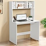 ABOUT SPACE Wooden Study Table with Hutch & Bottom Storage - Office Desk - Office Table for Laptop, PC-Engineering Wood Working, Drawing Computer table Table for Home (White - L 100 x B 50 x H 134 cm)